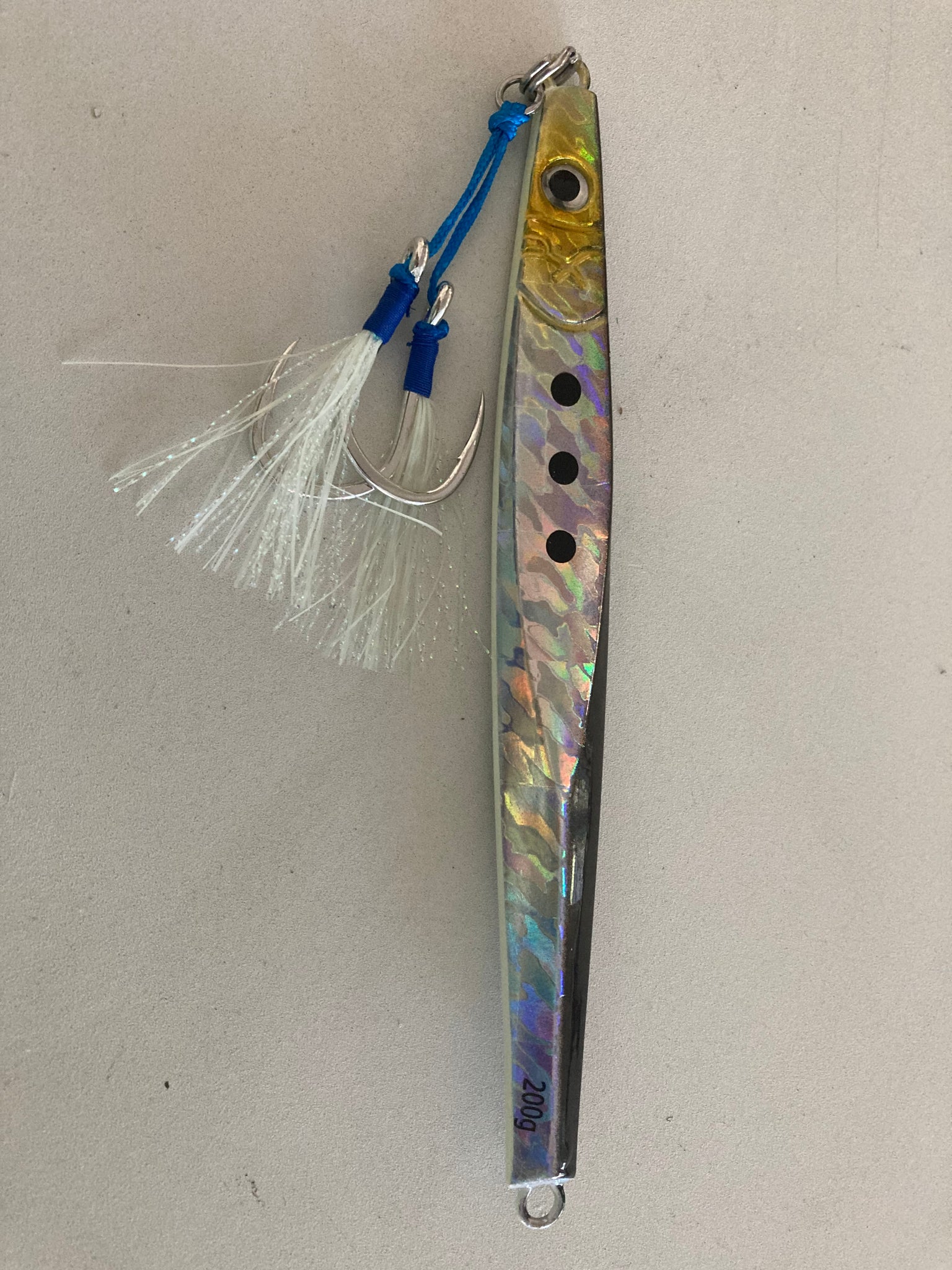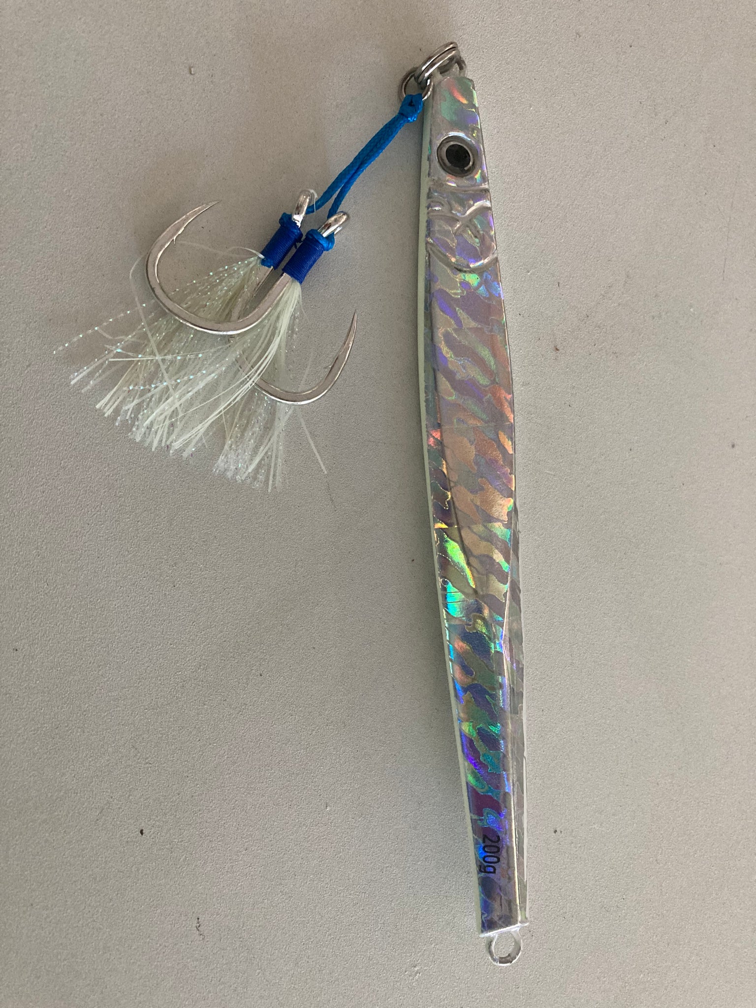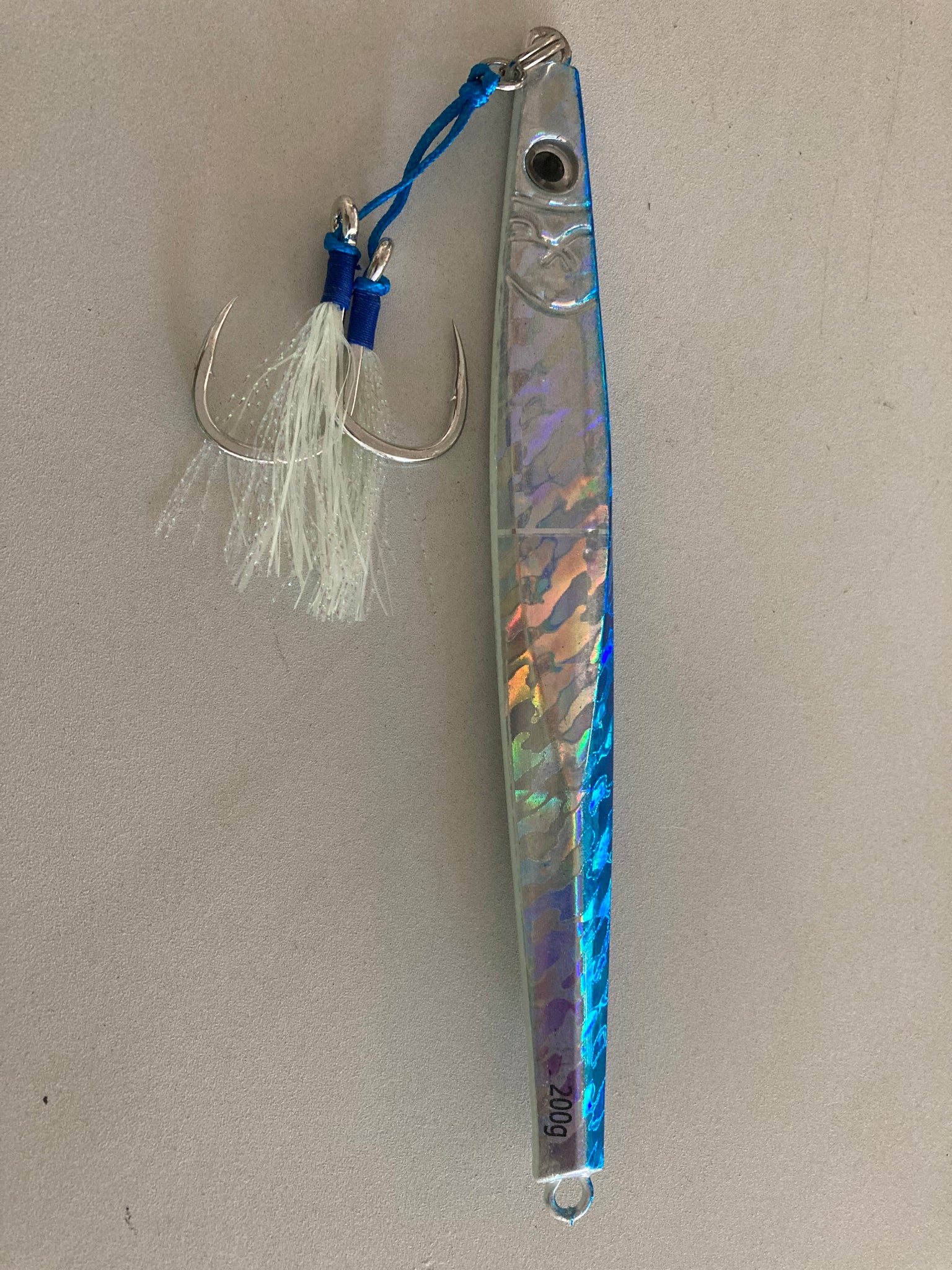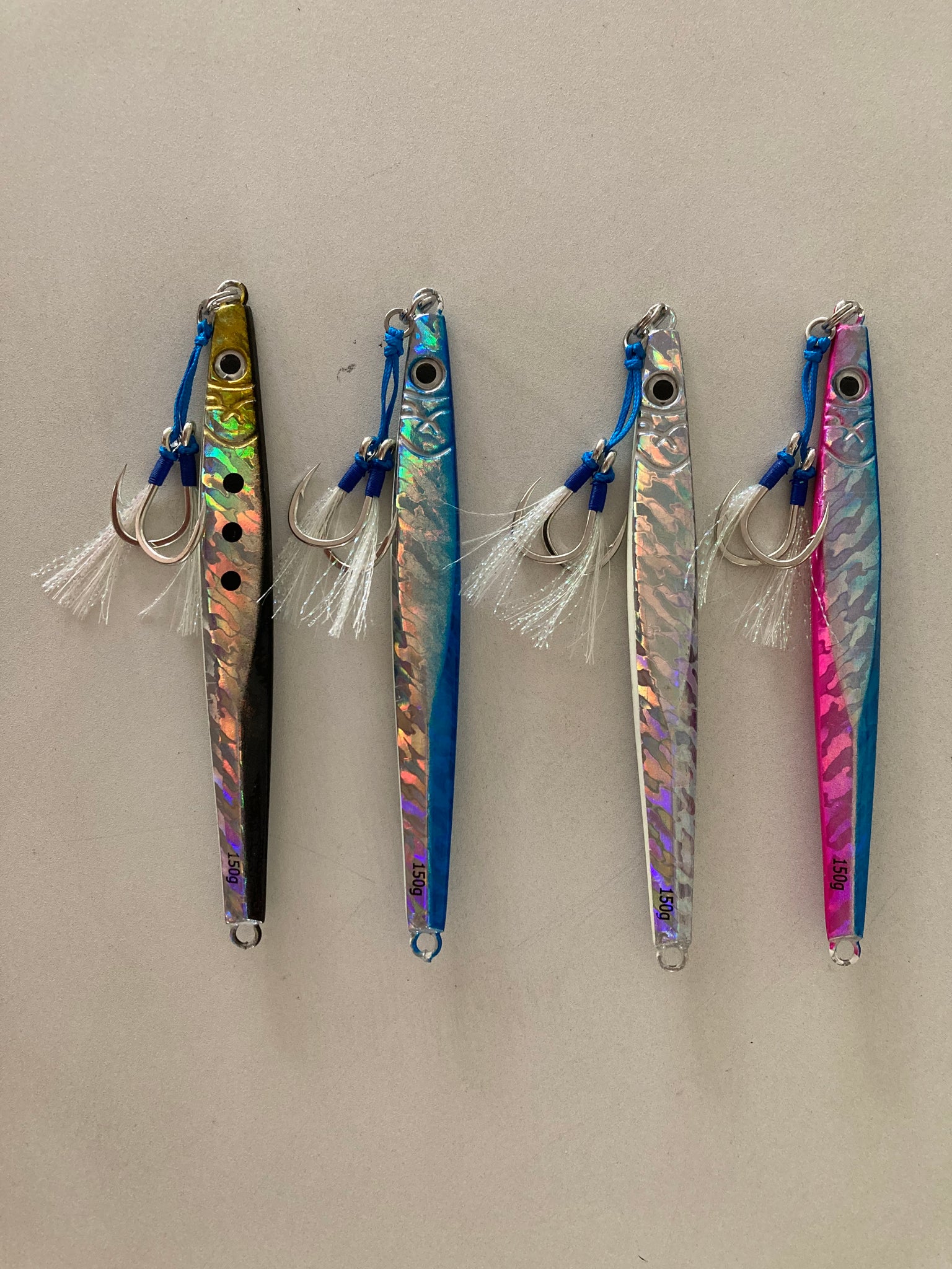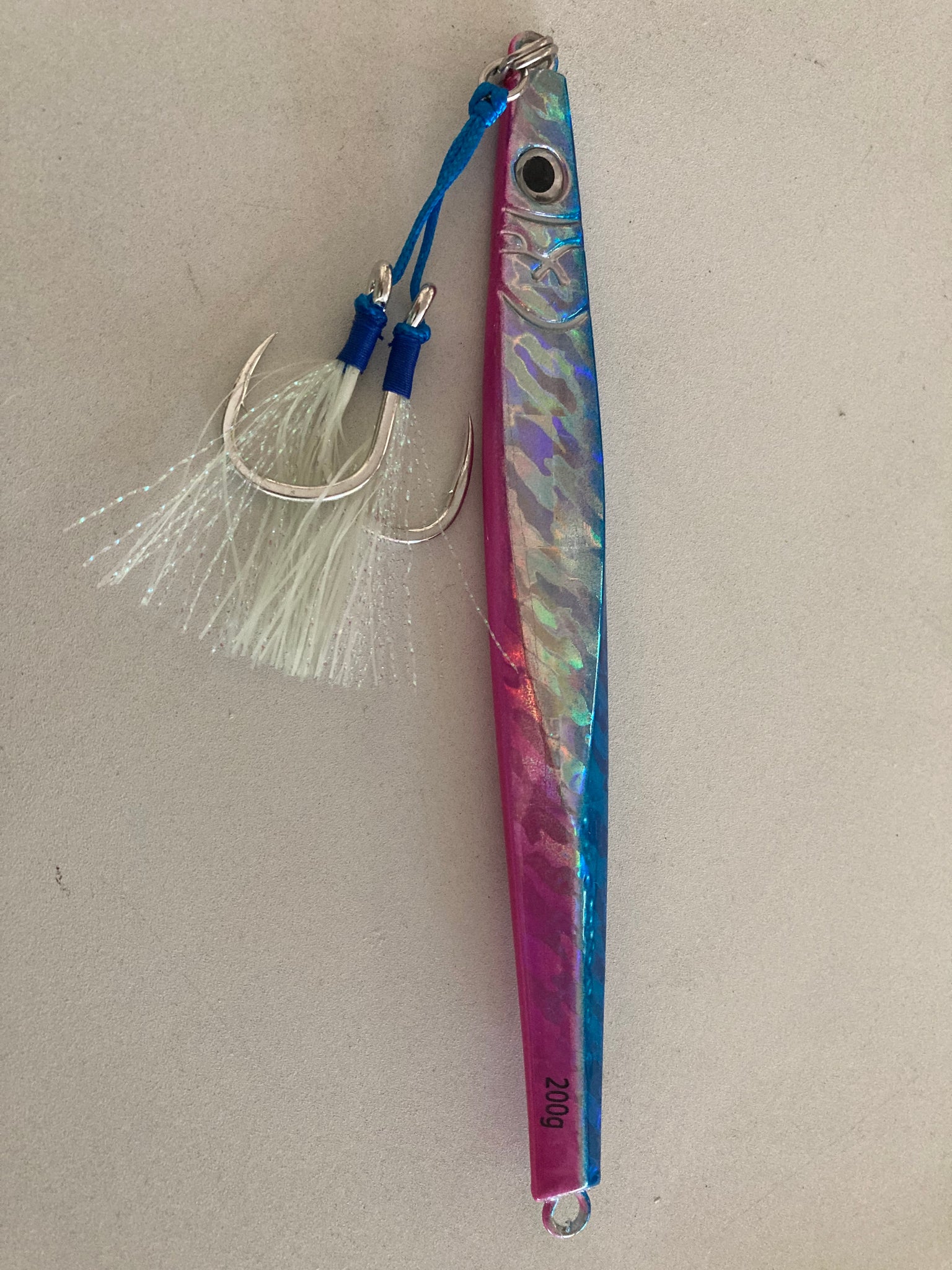 - 4 pack x 200g jigs - one of each colour rigged with twin BKK 3/0 Ultra Strong assist hooks